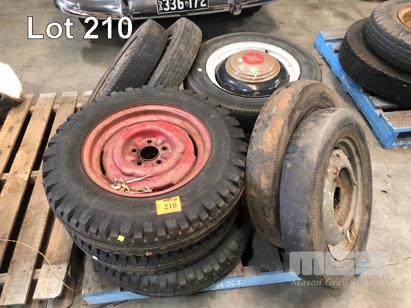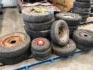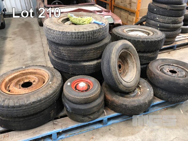 VARIOUS TRUCK & VINTAGE WHEELS & TYRES, ASSORTED, 3 x LARGE PALLETS