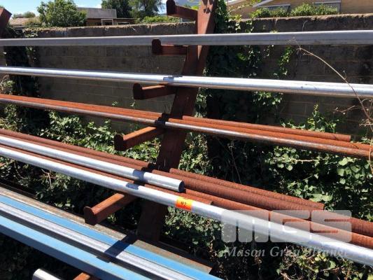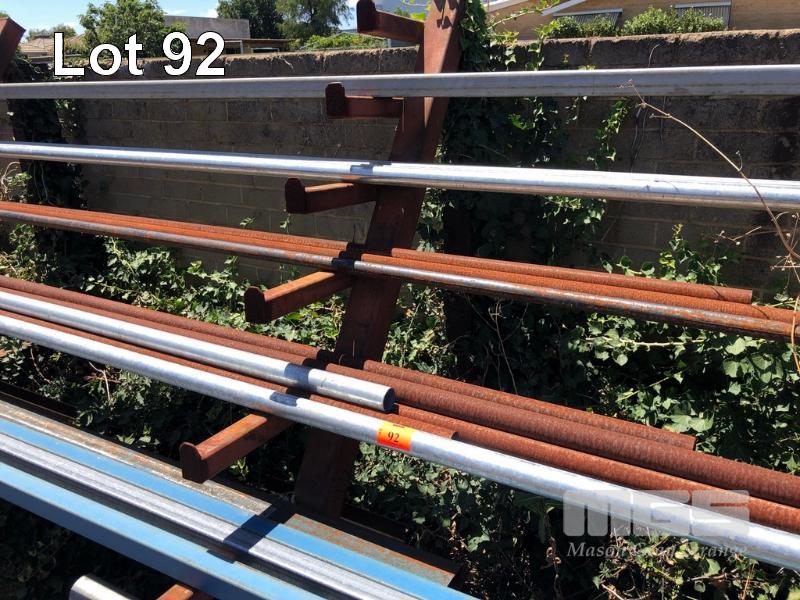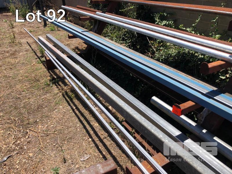 VARIOUS LENGTHS GALV & BLUE RHS, SOLID SQUARE, BLACK & GALV PIPE & CHANNEL & TEE SECTION, UP TO 8m, 23 x PIECES CONTENTS OF RACK