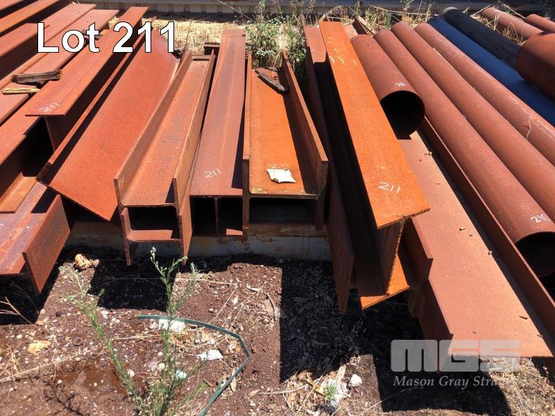 30 (APPROX) x PIECES ASSORTED OFFCUT STEEL INC UB, UC, SQ, RECT 150 x 150 x 6 RHS 150 x 100 x 7 RHS 200 x 200 RHS 250 x 250 RHS 400UB, 300UB, 250UB, 200UC, 150UC 380 CHANNEL UP TO 7m & BEARERS