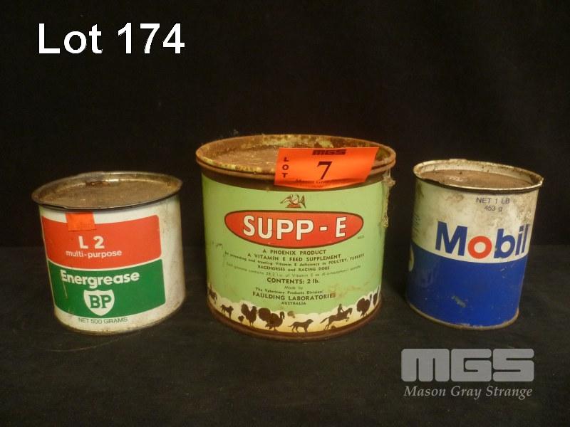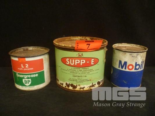MOBIL 1 POUND GREASE TIN, BP GREASE TIN, SUPP-E PRODUCE TIN