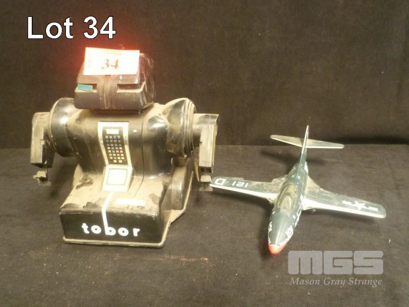 SCALE MODEL DIECAST NAVY JET & RETRO TOBOR ROBOT
