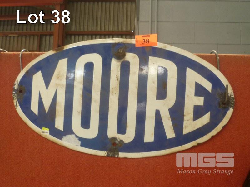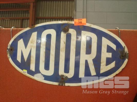 OVAL ENAMEL SIGN, "MOORE", 61 x 32cm