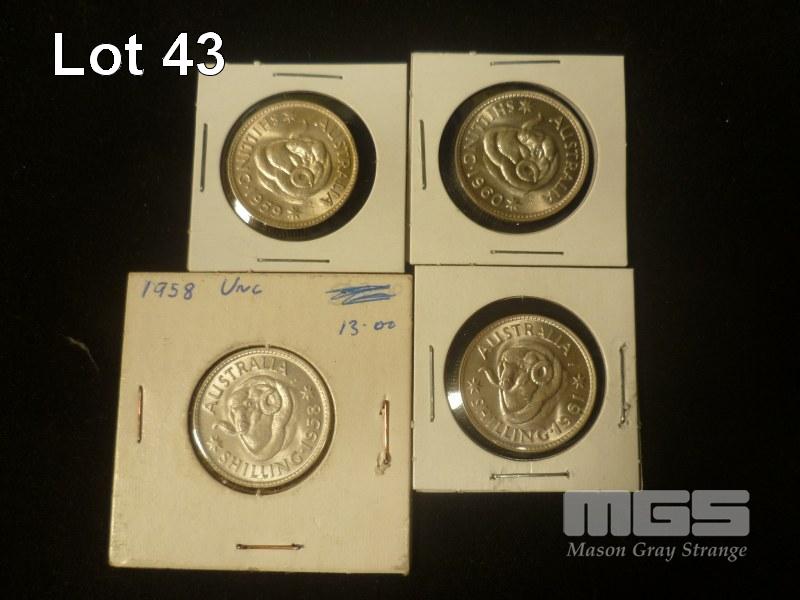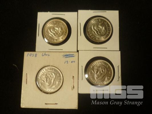 4 X SHILLINGS 1958, 1959 1960 & 1961 NEAR UNC
