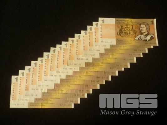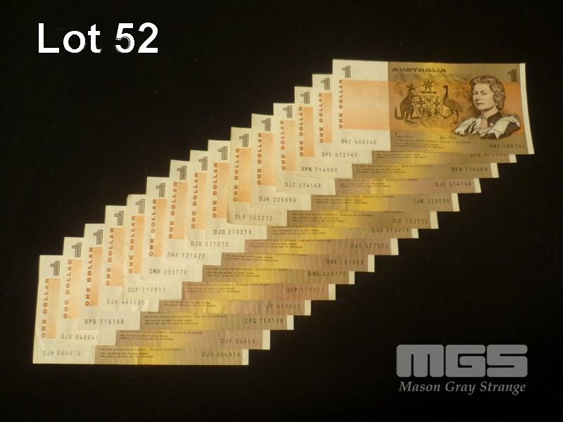 15 x AUSTRALIAN PAPER 1 DOLLAR NOTES, JOHNSTON/STONE