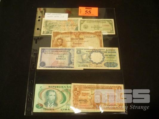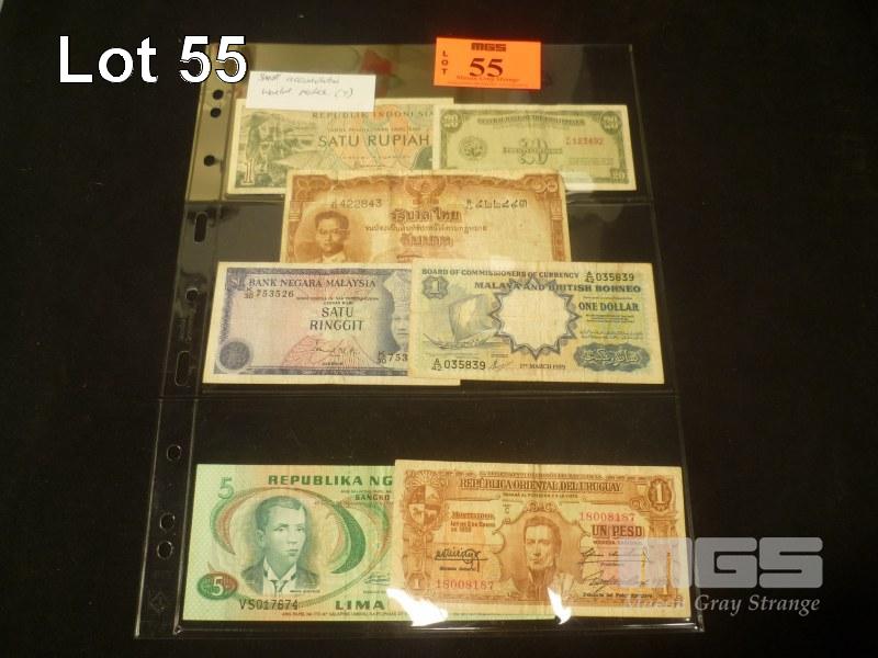 7 x WORLD BANKNOTES, URUGUAY, LIMA, MALAYSIA, INDONESIA, PHILIPPINES ETC