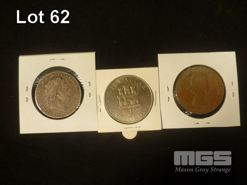 3 x CROWNS, 1820 GEORGE III, 1965 CHURCHILL & 1967 GIBRALTAR