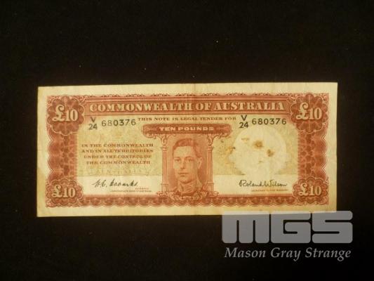 COMMONWEALTH OF AUSTRALIA 10 POUND NOTE, LAST PREFIX, COOMBS/WILSON V24 680376