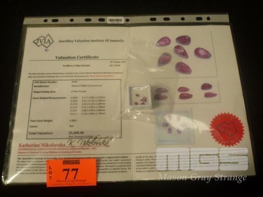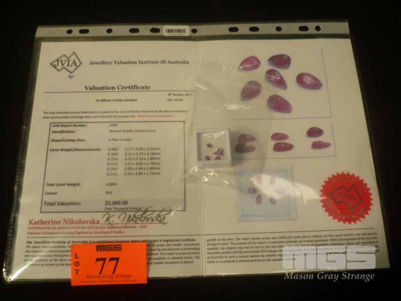 6 X NATURAL RUBIES, PEAR SHAPE, COLOUR RED, TOTAL CARAT WEIGHT 1.65 CTS, UNSET