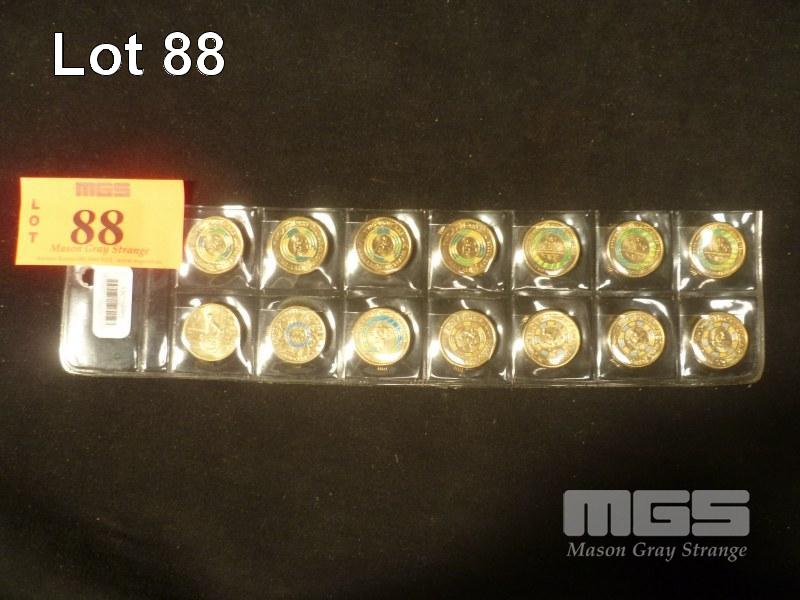 14 X ASSORTED COMMEMORATIVE TWO DOLLAR COINS, NEAR UNC 4 X 2019 WALLABIES, 3 X 2018 COMMONWEALTH GAMES, 4 X 2019 MR SQUIGGLE, 1 EACH OF 2018 INVICTUS GAMES, 2016 OLYMPIC GAMES, 2018 COMMONWEALTH GAMES