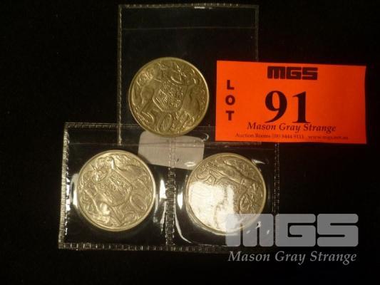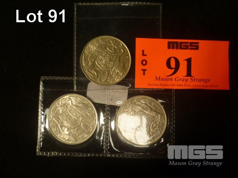 3 X 1966, AUSTRALIA, ROUND 50c COINS