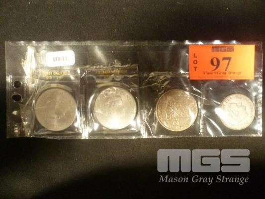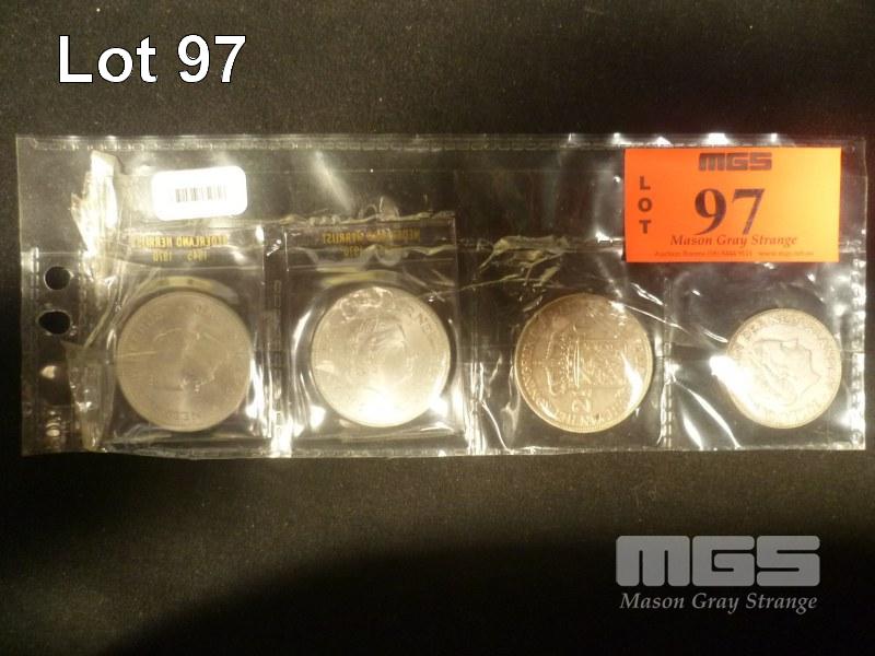 2 X NETHERLANDS 25TH ANNIVERSARY OF LIBERATION (.720 FINE SILVER) 1970 10 GULDEN COINS, 2 X 2 1/2 SILVER GULDEN COINS, 1939 & 1959