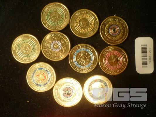 10 x $2.00 COLOURED COINS, WAGS THE DOG & POSSUM MAGIC