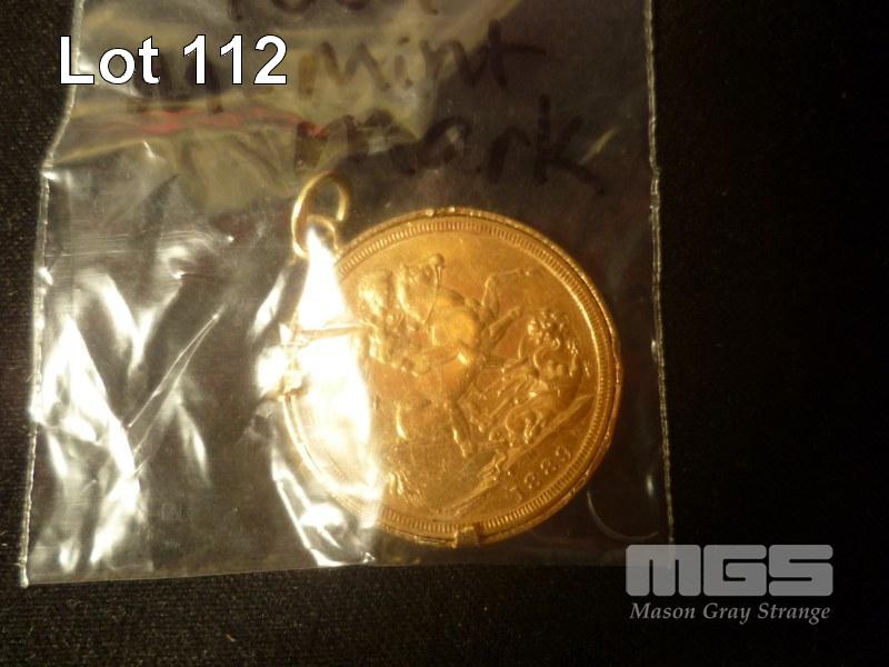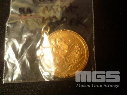 GOLD SOVEREIGN PENDANT, 1889, M-MINT MARK, 9.3gms, WITH PENDANT SETTING