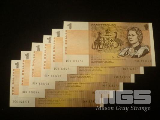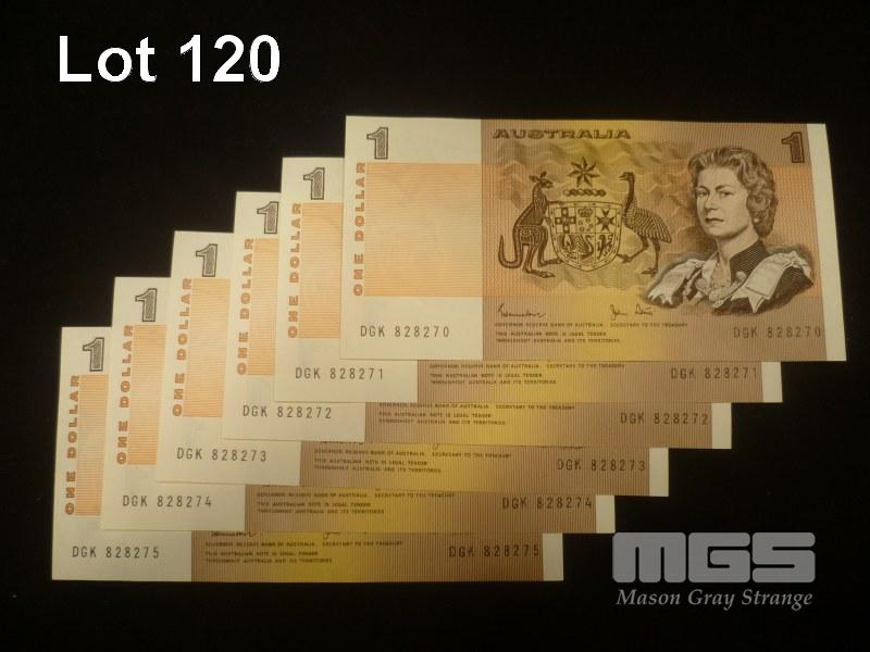 6 x $1.00 CONSECUTIVE PAPER NOTES, DGK 828270-82875