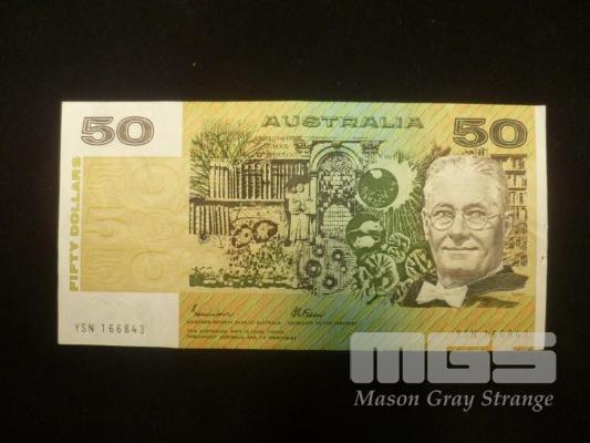 $50.00 PAPER NOTE, 1985 JOHNSTON/FRASER