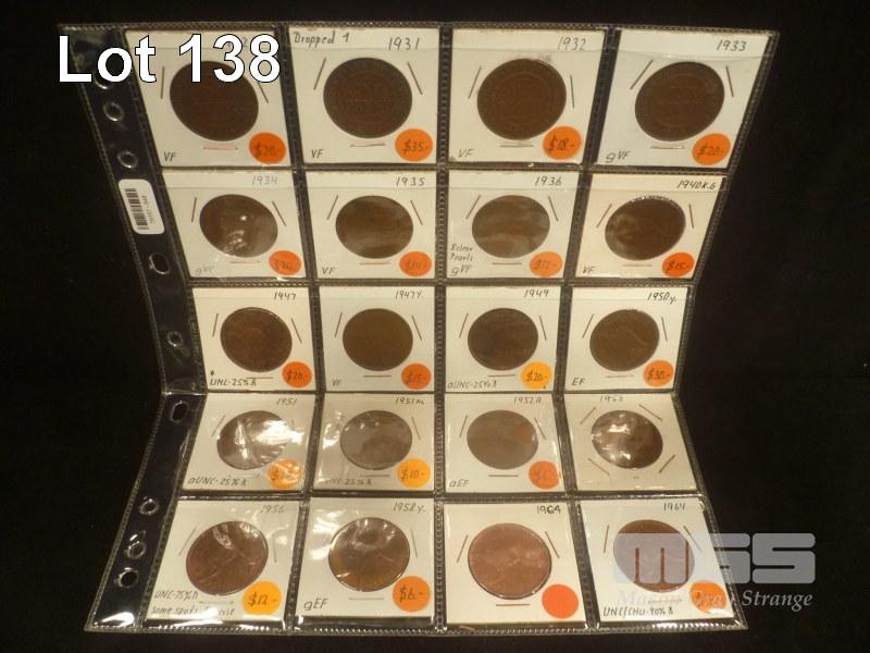 SHEET OF AUSTRALIA PENNY'S, ASSORTED DATES, INCLUDES 1931 DROPPED 'I'
