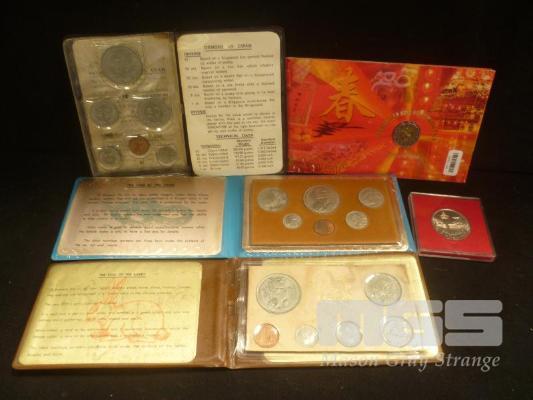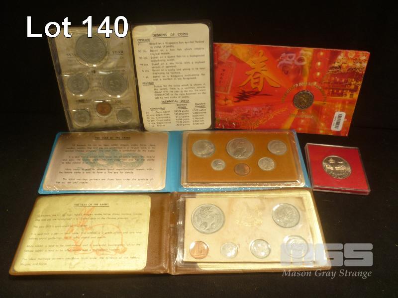 SINGAPORE COINS & SETS, INC; 1973 UNC SET, 1999 HONGBAO UNC COIN, YEAR OF THE RABBIT SET, YEAR OF THE SNAKE SET, 1981 CHAHI AIRPORT 5 DOLLAR COIN