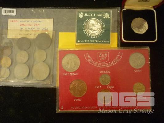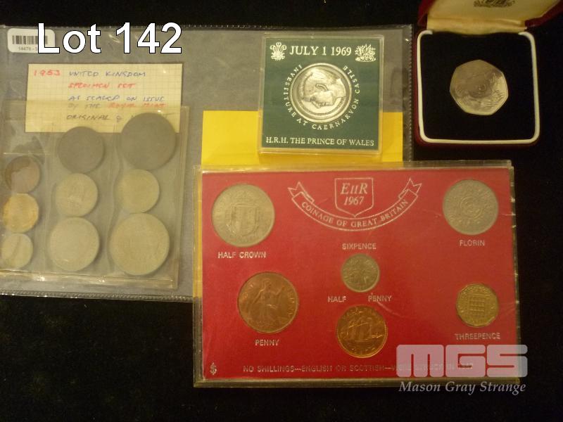 UNITED KINGDOM COINS & SETS, INC; PRINCE OF WALES PEWTER INVESTITURE MEDAL 1969 CAERNARVON CASTLE, CASED 1973 50p, 1967 COINAGE, 1953 COINAGE