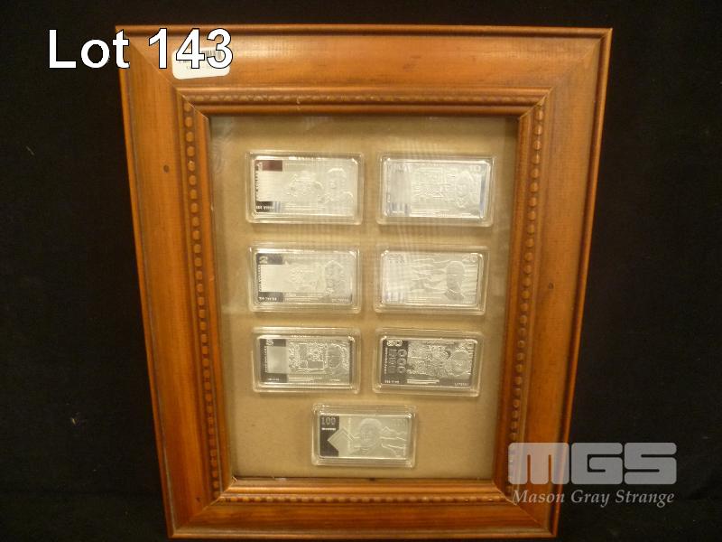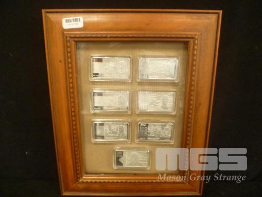 FRAMED SET OF 7 AUSTRALIA, DECIMAL BANKNOTE INGOTS, SILVER .999 LAYERED WITH COA