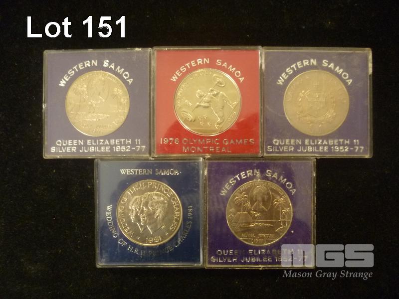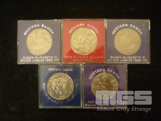 5 X WESTERN SAMOA, CASED COMMEMORATIVE COINS