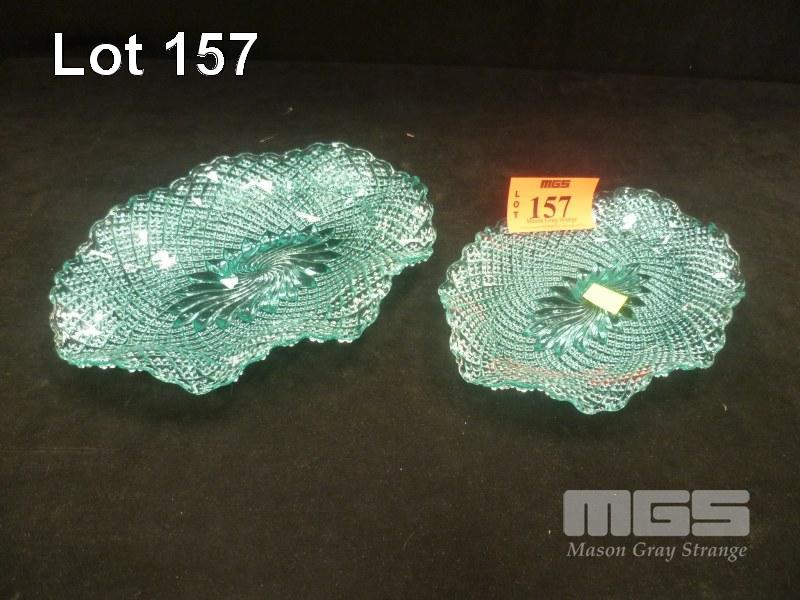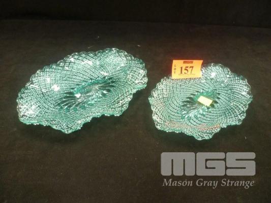 PAIR BLUE GLASS DISHES (GLOWS GREEN UNDER UV LIGHT)