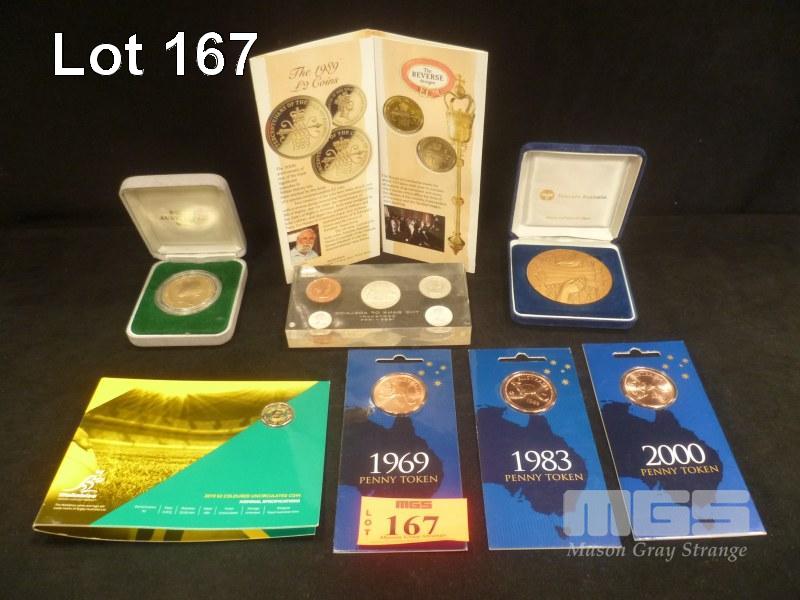 PENNY TOKEN & $5.00 COIN & WALLABIES $2.00 COIN