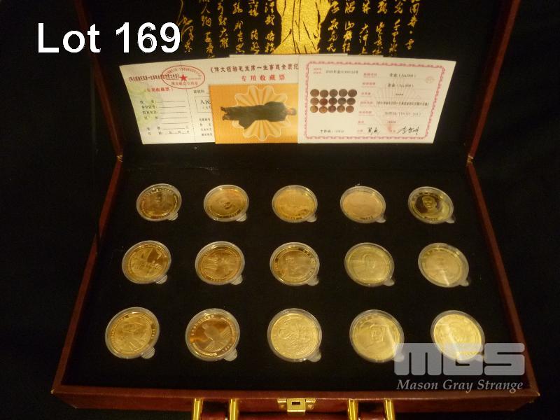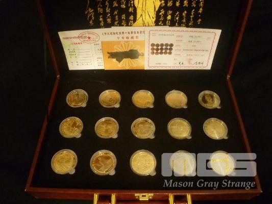 CASE CONTAINING 15 GOLD PLATED CHINESE MEDALLIONS WITH CERTIFICATES