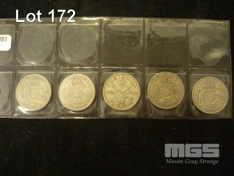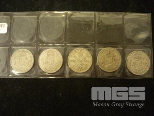 5 X AUSTRALIA FLORINS, INC; 1946, 1947, 1951 COMMEMORATIVE, 1951, 1952