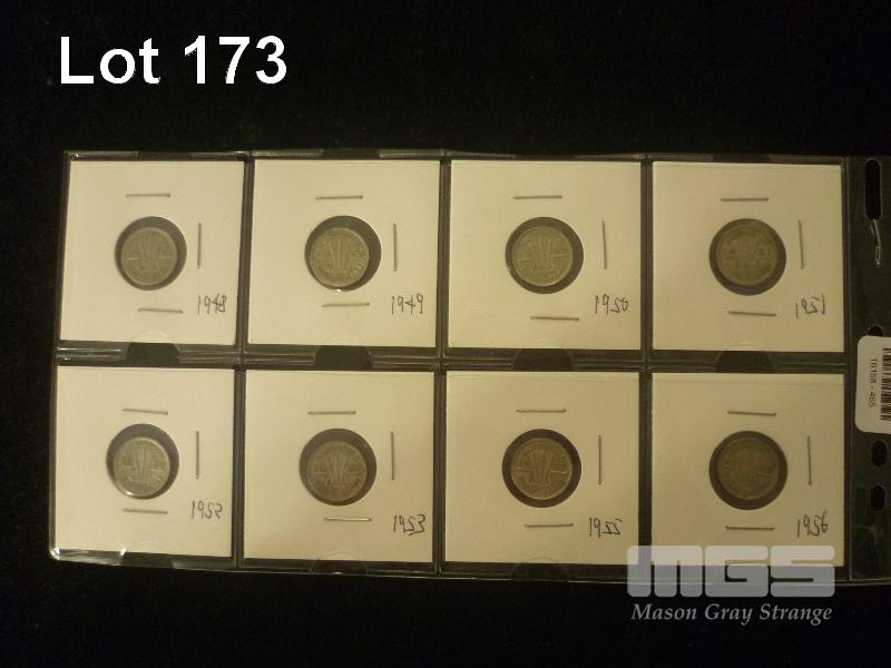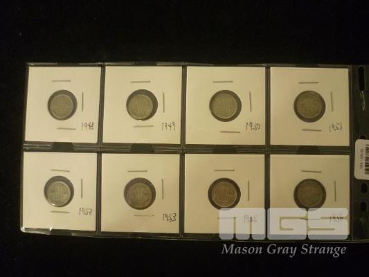 8 X AUSTRALIA THREEPENCE, INC; DATE RANGE 1948-1956