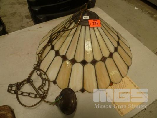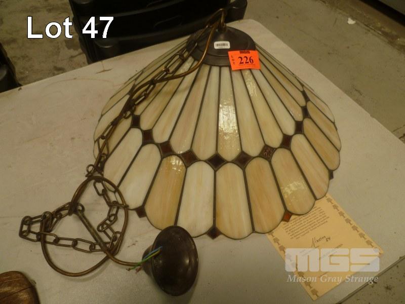 TIFFANY CEILING LIGHT, LEADLIGHT MOD: NIXON 84 x GLASS PARTS CERTIFICATE OF ORIGINAL AMERICAN LAMP IN TIFFANY STYLE (GERMAN WORDING) 52cm DIAMETER