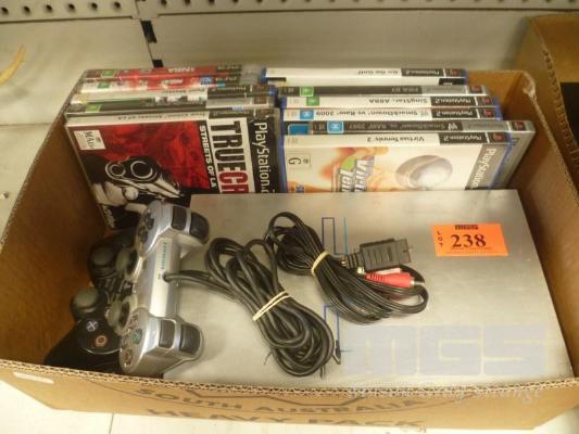 PS2 CONSOLE & 2 x CONTROLLERS, WITH 11 x ASSORTED GAMES