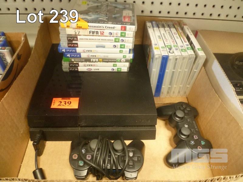 PS4 CONSOLE & 2 x CONTROLLERS, WITH 16 x ASSORTED GAMES