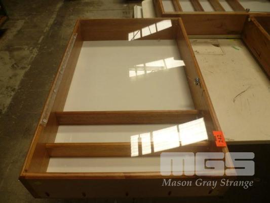 OAK FRAMED, PERSPEX FRONTED LOCKABLE WALL MOUNT DISPLAY CABINET, WITH KEY & INTERNAL SHELVES, 100cm x 62cm x 15cm (D)