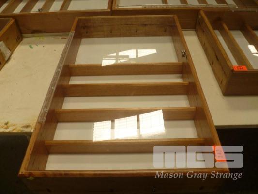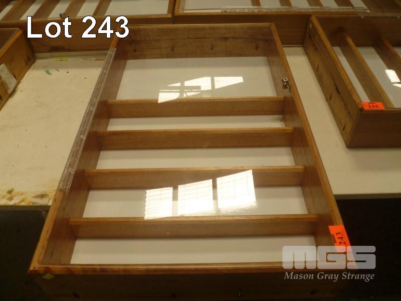 OAK FRAMED, PERSPEX FRONTED LOCKABLE WALL MOUNT DISPLAY CABINET, WITH KEY & INTERNAL SHELVES, 100cm x 62cm x 15cm (D)