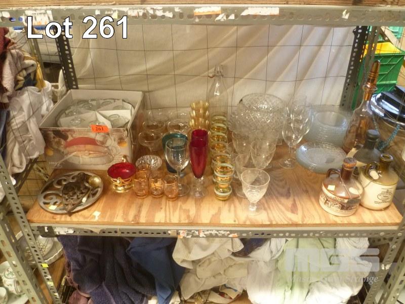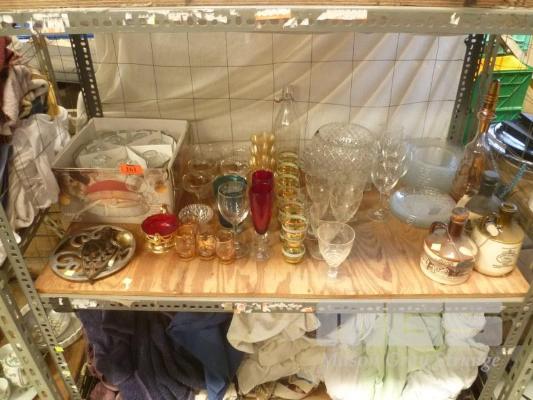 COLOURED GLASS, RUBY, PUNCH BOWL SET, PORT STONEWARE BOTTLES ETC