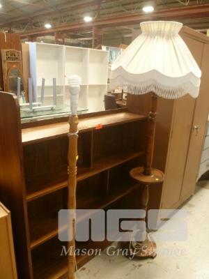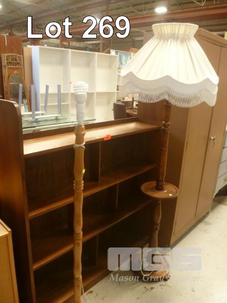 2 x STANDARD LAMPS, 1 x WITH SHADE & HALF HEIGHT BOOKCASE