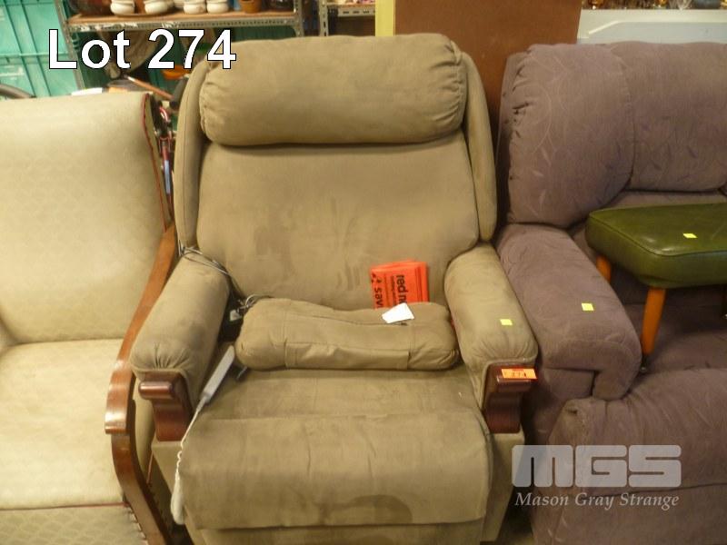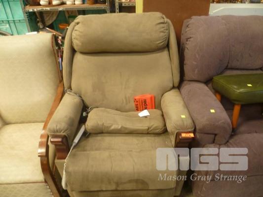 OLIVE GREEN FABRIC UPHOLSTERED ELECTRIC RECLINER ARMCHAIR