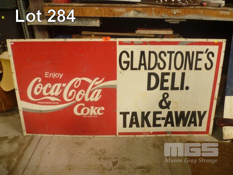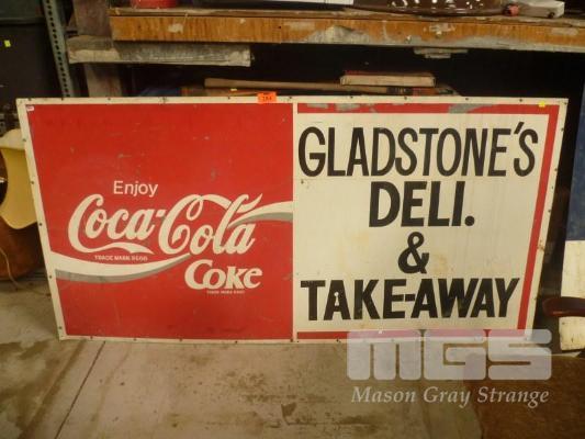 TIN SIGN, "COCA-COLA", "GLADSTONES DELI & TAKEAWAY", 180x 90cm