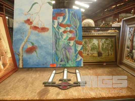 FRAMED PICTURES, PRINTS & LEADLIGHT WALL HANGING