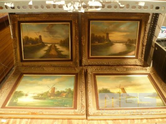 SET OF 4 OIL ON BOARD PAINTINGS,