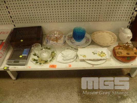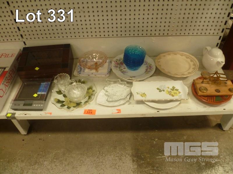 ASSORTED CERAMICWARE, KITCHEN SCALES & TEA BOX
