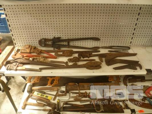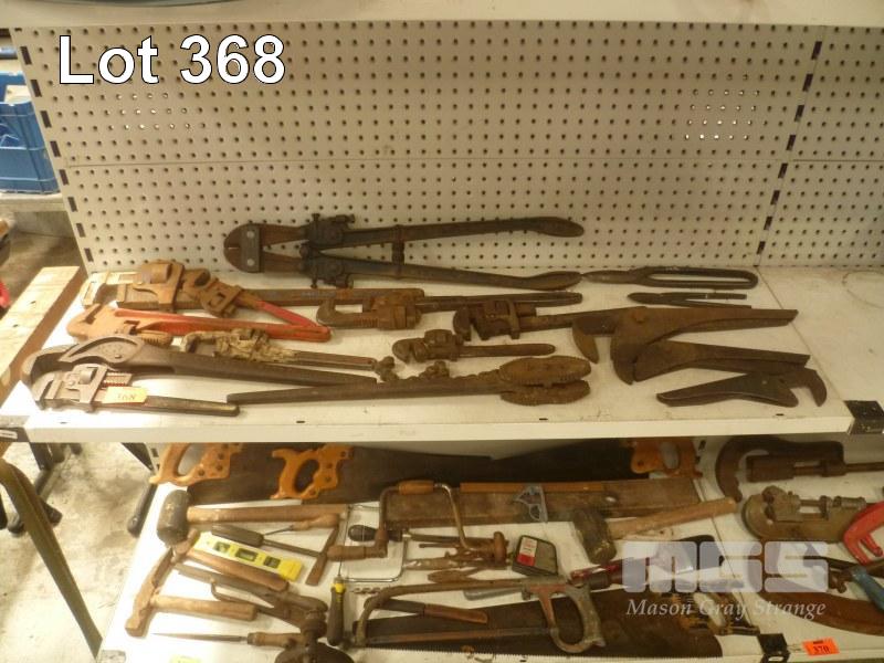 ASSORTED PLUMBERS PIPE WRENCHES, FOOTPRINT WRENCHES & BOLT CUTTERS