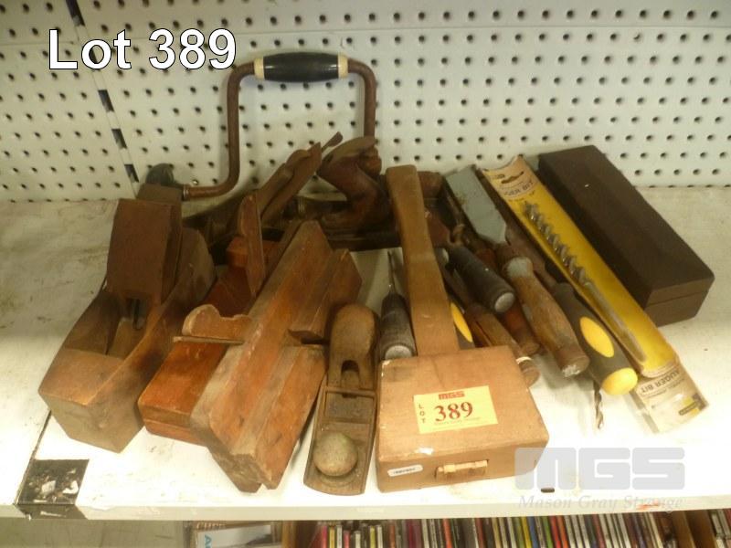 VINTAGE WOOD PLANES, CHISELS, ETC