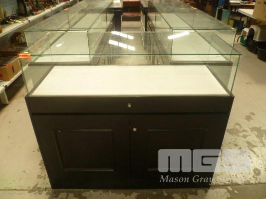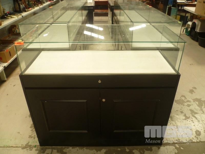 DISPLAY CABINET, GLASS TOP 2 DOOR, SINGLE DRAWER UNDER STORAGE, 116cm (D) x 48cm (H) x 105cm (NO KEYS)