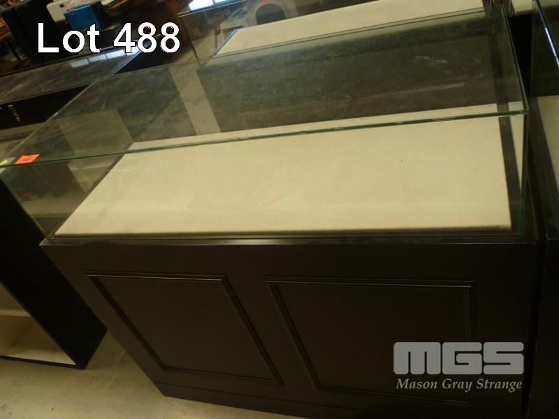 DISPLAY CABINET, GLASS TOP 2 DOOR, SINGLE DRAWER UNDER STORAGE, 116cm (D) x 48cm (H) x 105cm (NO KEYS)
