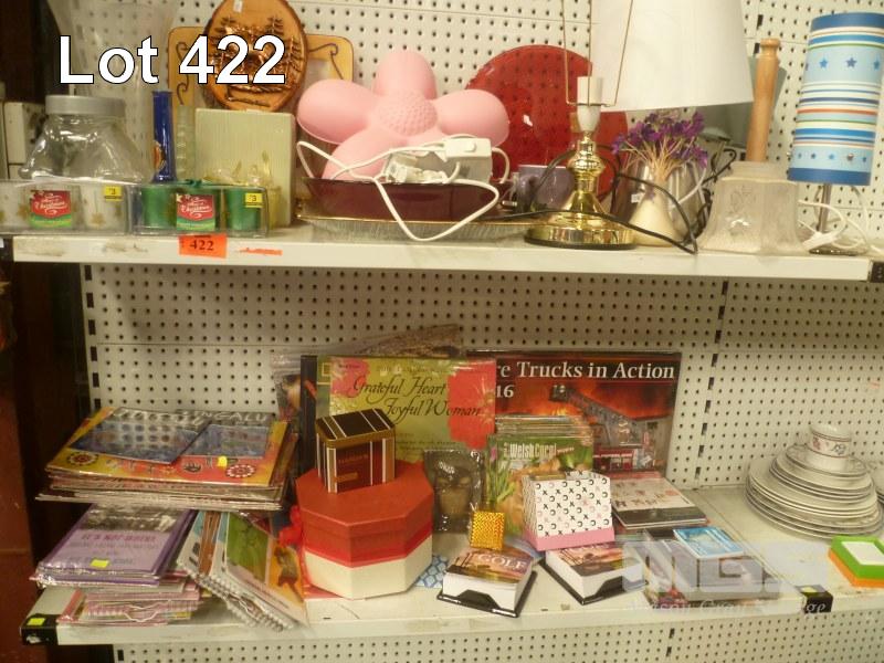 ASSORTED HOMEWARES, LAMPS, 2016 CALANDERS ETC 2 X SHELVES