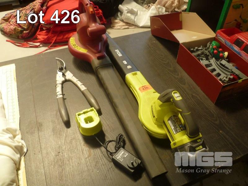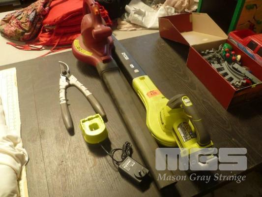 RYOBI CORDLESS BLOWER WITH BATTERY & CHARGER, POPE BLOWER VAC & PRUNERS