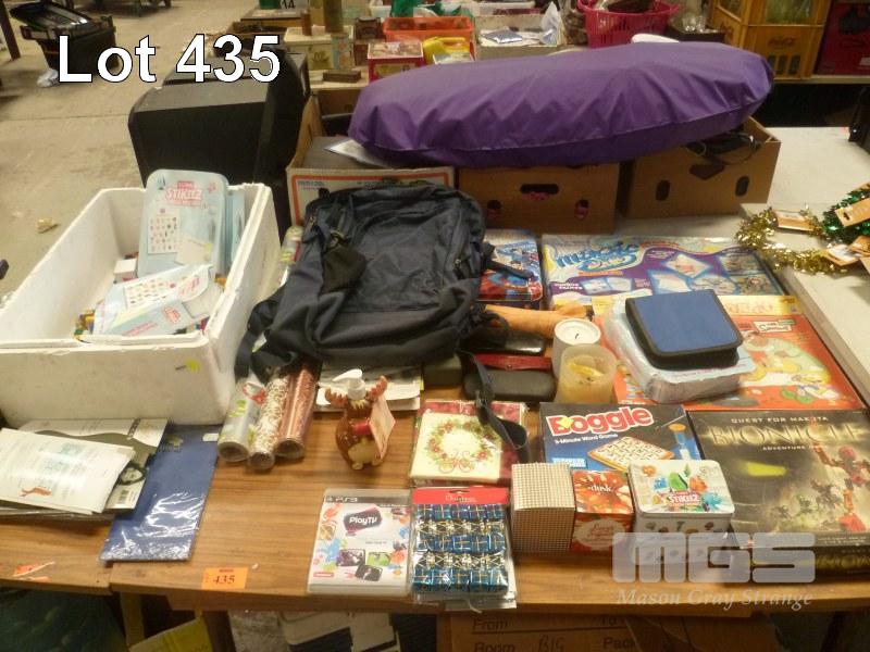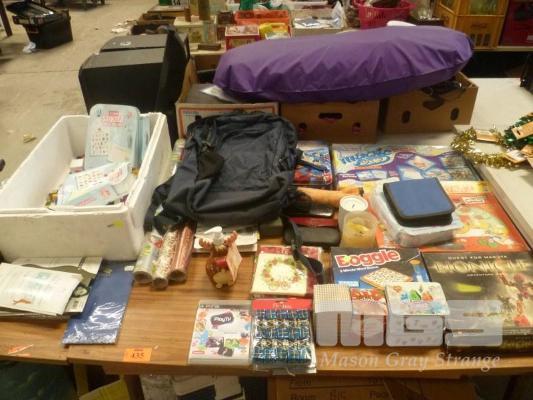 ASSORTED TOYS, GAMES, WRAPPING PAPER, ETC, 1 x TABLE