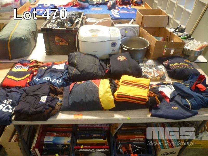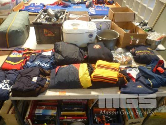 ADELAIDE CROWS & SES MEMORABILIA INC SCARVES, JACKETS, TOPS, JUMPERS, ETC, 1 x TABLE