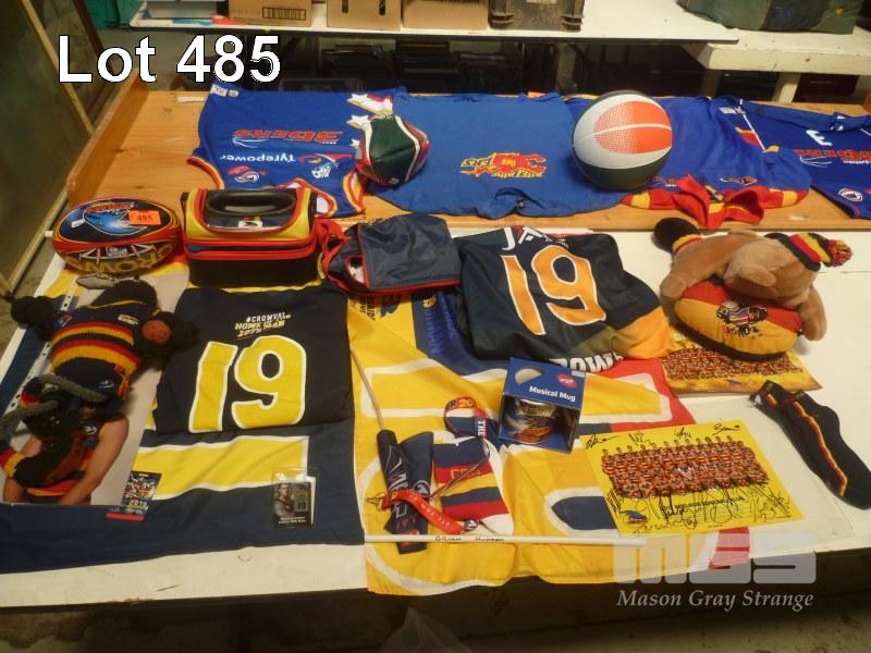 ADELAIDE CROWS MEMORABILIA INC FLAGS, TOPS, SIGNED PHOTOGRAPH, ETC, 1 x TABLE